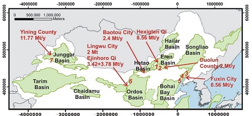 图1 中国北方大型沉积盆地与煤化工产业的CO2源汇匹配