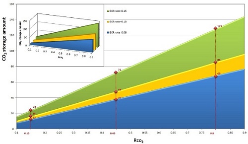 图2 辽河油田大民屯、曙光、欢喜岭与高升油田封存CO2潜力