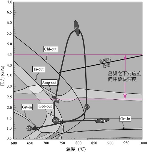 图1 毛屋石榴斜方辉石岩的变质演化P-T轨迹