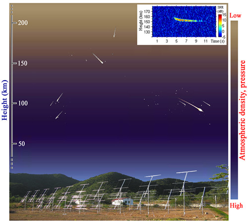 流星体(如彗星和小行星的碎片、星际残骸与尘埃等)以约11―72公里/秒的速度进入地球大气层时,与大气分子碰撞,空气分子被激发或电离,同时流星体也因高温熔化并分解为离子等,流星体周围会产生随其行进的高密度等离子体团(常称为流星头),并在行进的路径上留下离化的等离子体尾滞留在大气中(称为流星尾迹)。由于地球高空130公里高度以上大气稀薄,与流星体碰撞的大气分子相对稀少,同时缺乏足够的热能使流星体离化,因此一般认为流星尾迹主要发生在地球高空约80―120公里高度之间。然而,在130公里高度以上的地球大气稀薄区域,流星现象能否发生并产生流星不均匀体是一直存在并被众学者所关注的问题。