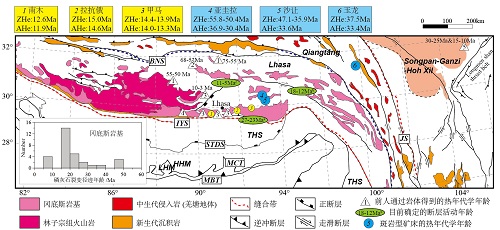 图3 拉萨地体和藏东地区地质简图,附部分区域热年代学结果