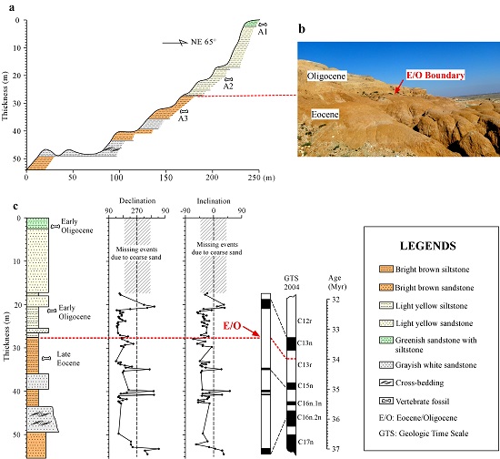 图1 在古生物地层学和磁性地层学基础上,确定了始新世/渐新世界线