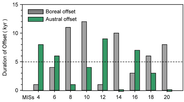 研究冰盖消长与地球运动轨道参数的关系有两个关键时段:冰盖消融期(冰消期)和冰盖扩张期。学术界针对冰消期开展过大量研究,但是对冰盖扩张期的研究一直进展缓慢,原因在于,与冰消期气候快速变化相比,冰盖扩张期气候是“渐变”的,难以实现冰盖扩张与轨道参数变化的精确对比。