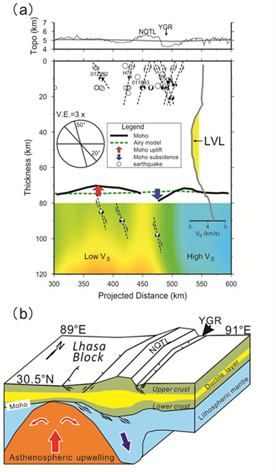 以上研究成果近期发表在国际知名地学期刊Earth and Planetary Science Letters上(Tian et al. Weakly coupled lithospheric extension in southern Tibet. Earth and Planetary Science Letters, 2015, 430: 171-177)。 、