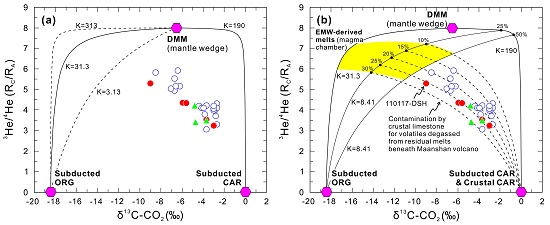 2 He-C同位素混合模型揭示大陆岩石圈俯冲导致的地幔楔富集过程与幔源岩浆挥发份的地壳混染过程