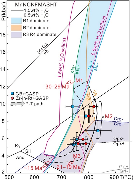 图1定结地区喜马拉雅泥质麻粒岩的温度压力条件、P–T轨迹及关键变质反应