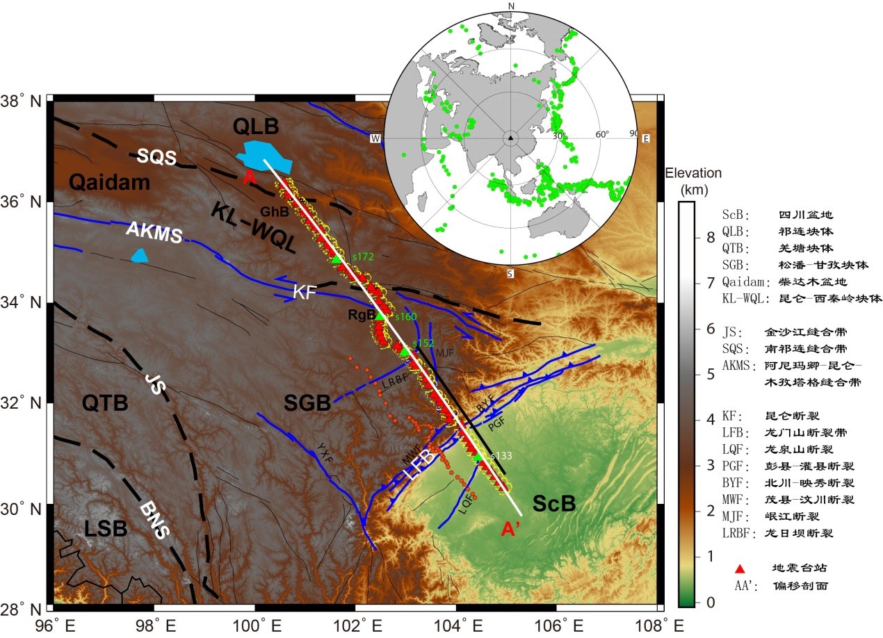 青藏高原的隆升和横向扩展机制一直存在较大争议,现今有地壳通道流、块体挤出等不同的端元模型来解释高原的横向扩展。高原东缘和东北缘是高原横向扩展的前缘过渡带,在新生代发生了明显构造变形,该区也是我国大陆地震多发地带,研究其地壳结构与性质对认识高原隆升、北东向扩展以及孕震和发震机制具有重要意义。