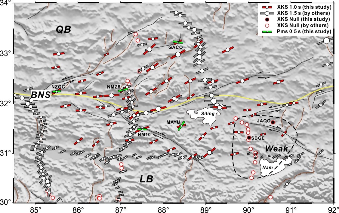 研究成果发表于EPSL(Wu C, Tian X, Xu T, et al. Deformation of crust and upper mantle in central Tibet caused by the northward subduction and slab tearing of the Indian lithosphere: New evidence based on shear wave splitting measurements[J]. Earth and Planetary Science Letters, 2019, 514: 75-83. DOI: 10.1016/j.epsl.2019.02.037)(原文链接)