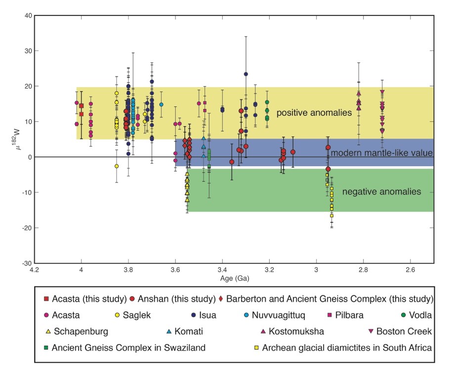 图1 地球样品(>2.5 Ga)的W同位素组成