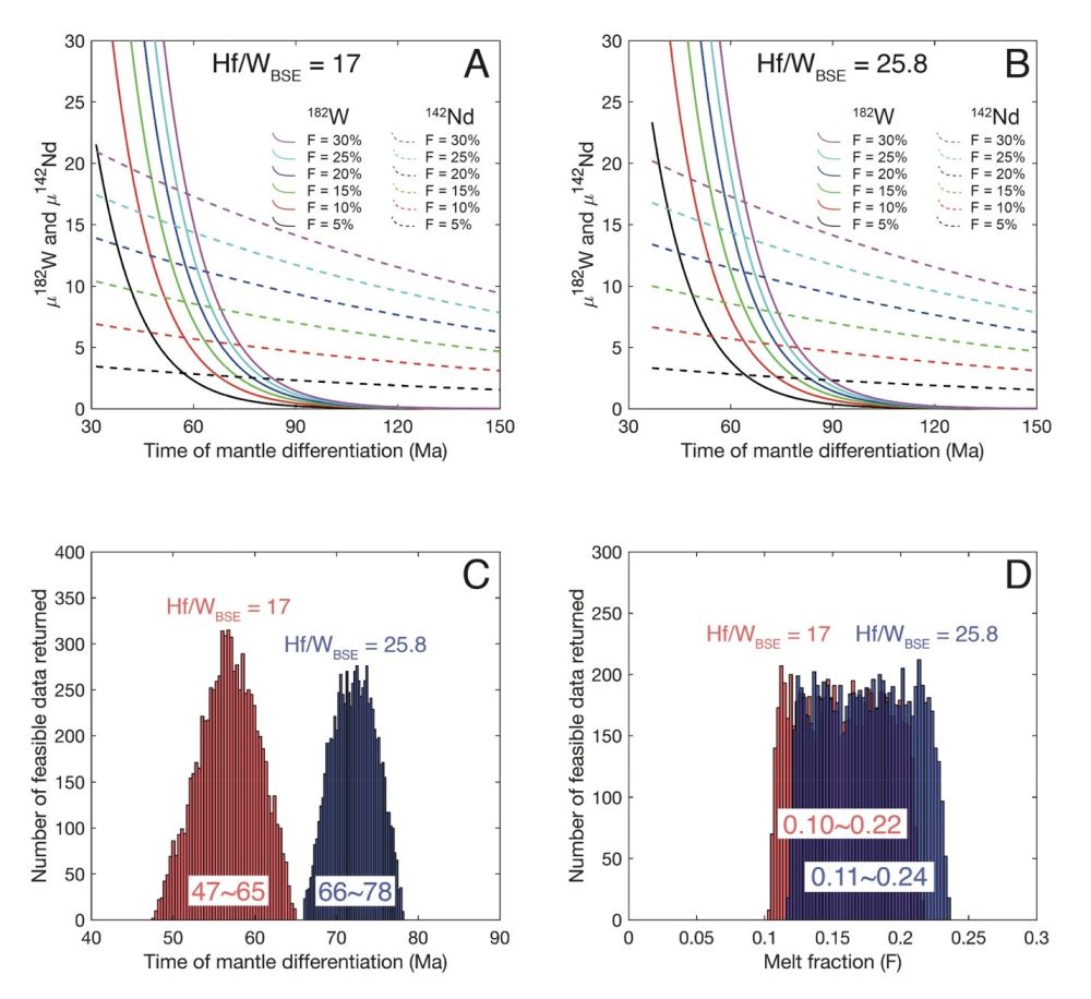 图2 早期地幔分异产生的亏损区域具有高Hf/W、Sm/Nd比值,182Hf与146Sm衰变后产生耦合的182W-142Nd正异常