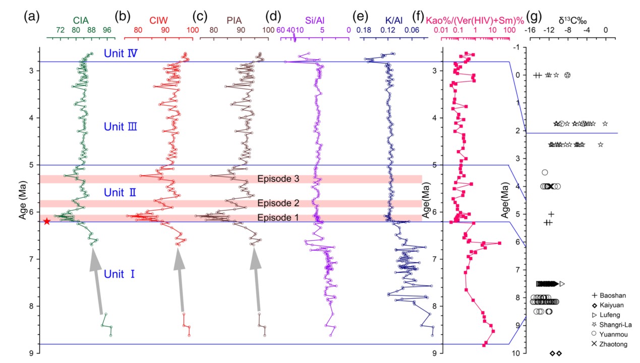 研究发现,晚中新世至上新世期间化学风化整体呈现三阶段的减弱趋势;