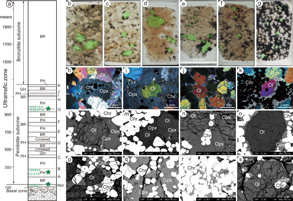 大型层状镁铁-超镁铁岩体是研究幔源岩浆演化和成矿过程的天然实验室。对该类型岩体的一系列研究成果不仅促进了矿物学、岩石学、矿床学和地球化学等基本理论的建立和完善,也引领了这些领域的科学前沿。这类岩体赋含有丰富的铬铁矿、铂族元素、钒钛磁铁矿等矿床资源,其中的大型层状铬铁矿床储量占全球资源总量的70%。尽管层状铬铁矿床的成因机制尚存争议,但多数学者均认为大量铬铁矿的结晶并聚集成矿极大地改变了演化岩浆及伴生硅酸盐矿物的物理化学性质。详细剖析这一改造过程直接关乎岩石和矿物化学组成对成岩成矿过程的示踪作用。