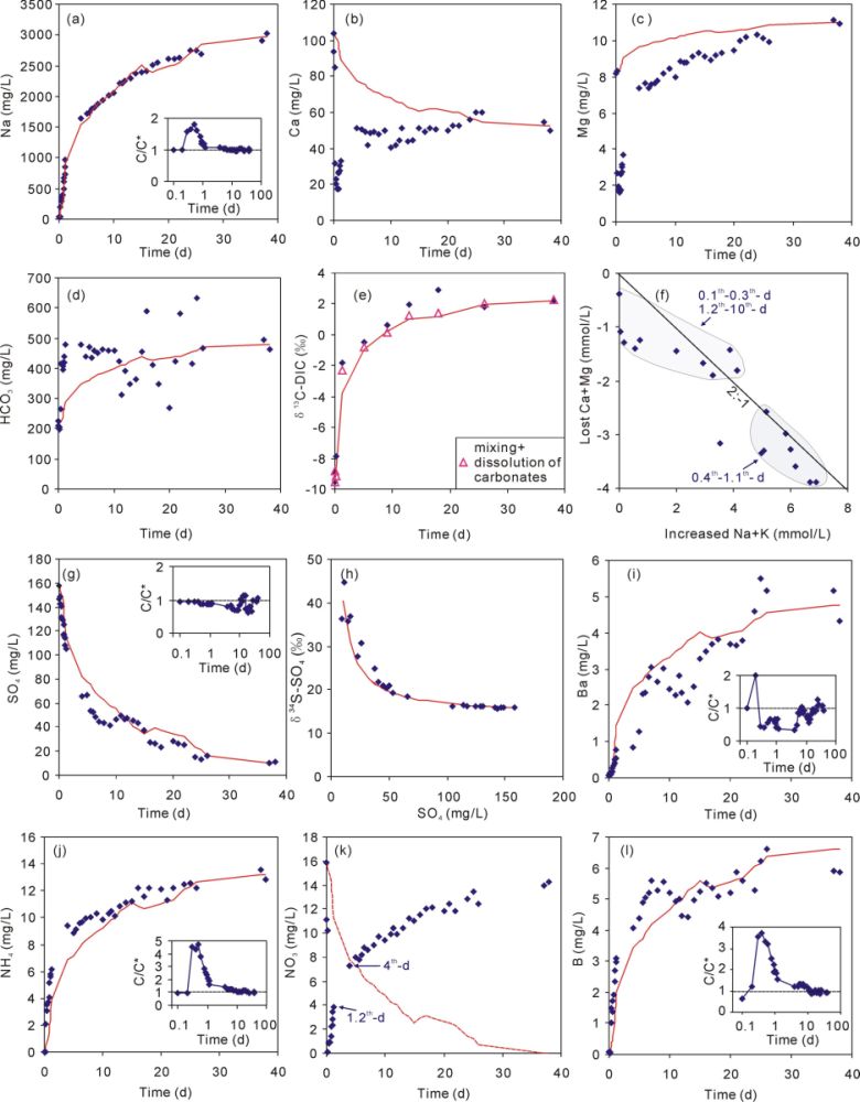 针对上述问题,800彩票页岩气与地质工程院重点实验室黄天明副研究员、庞忠和研究员、李晓研究员、李关访工程师、利振彬博士生等人依托中科院页岩气先导专项贵州习水钻测平台,获取了迄今为止分辨率最高的返排液数据,同时结合与之匹配的室内水岩反应实验及同位素示踪(包括δ2H-H2Oδ18O-H2Oδ34S-SO4δ18O-SO4δ15N-NO3δ18O-NO3δ15N-NH4δ13C-DIC3H14C-DIC等),精细刻画了压裂及返排过程中的地球化学反应。