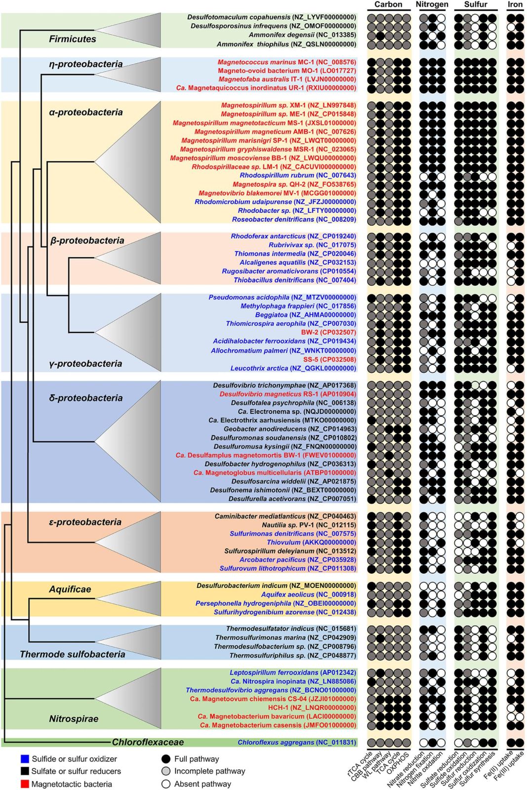 5 基因预测分析揭示趋磁细菌具有碳、氮、硫和铁等元素多样化的代谢潜能,指示其是一类重要的微生物功能群,在地球水生环境的物质和能量循环中起重要作用