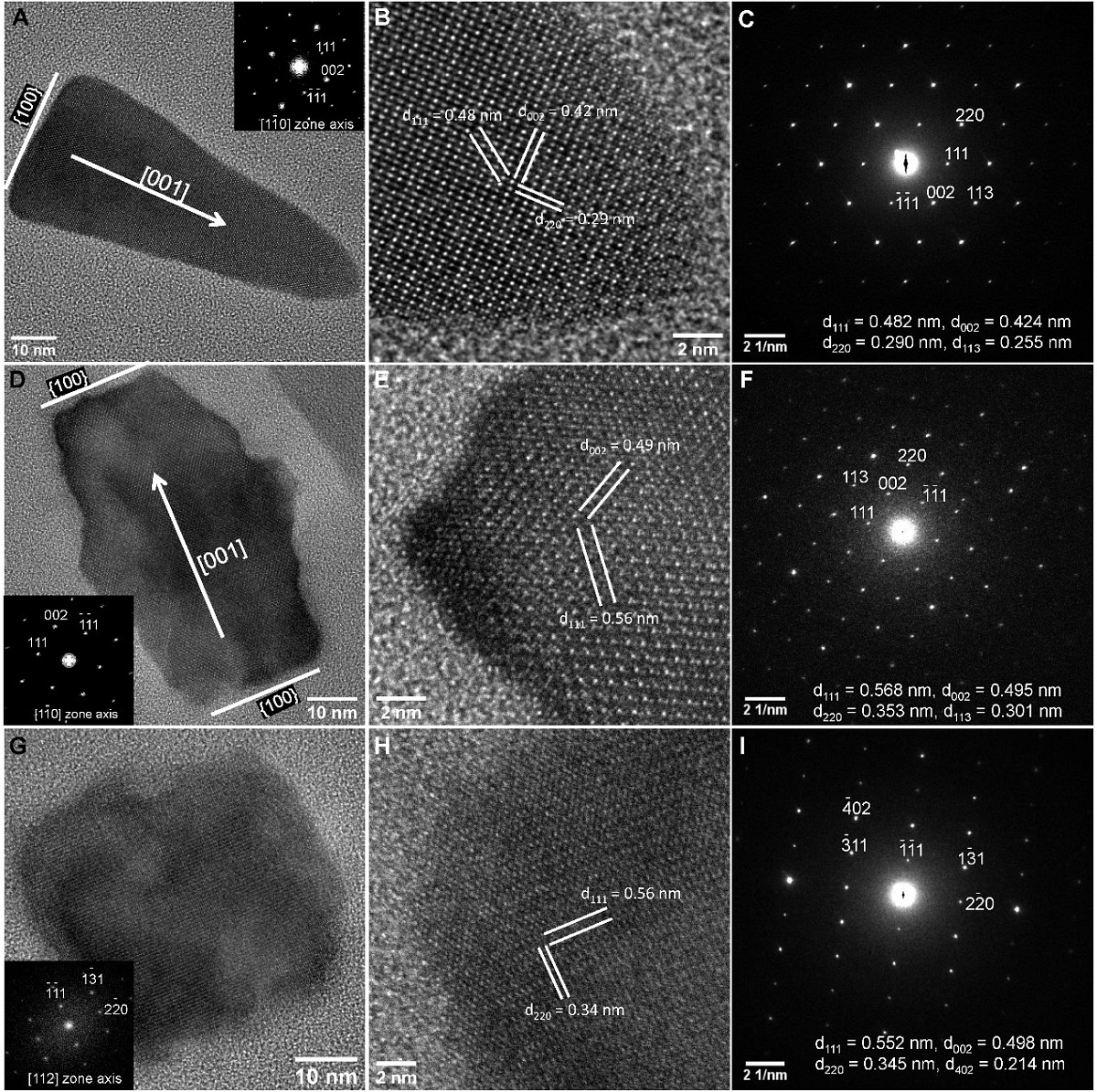 完成了三株新的未培养硫酸盐还原趋磁细菌的种类鉴定后,他们进一步采用先进的透射电镜技术对其磁小体晶型和矿化机制开展研究(图5-图6),并与前人以及他们前期的研究结果进行对比。结果表明: