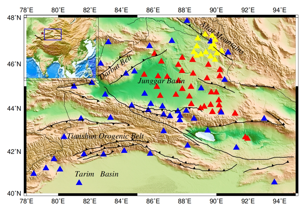 天山造山带位于亚洲中部,距离印度和欧亚大陆的碰撞边界约2000公里,是世界上最大、最活跃的陆内造山带。天山造山带一般认为是由古生代诸多微大陆、岛弧和古亚洲洋俯冲碰撞形成的,经历了中生代到早新生代的夷平作用。在渐新世,在欧亚与印度大陆陆-陆碰撞碰引起的远场应力的持续影响下,天山地区构造活动重新激活,造山带迅速抬升。由于其活跃的构造活动,天山造山带被视为研究陆内造山演化和造山过程的理想研究区域。然而,长期以来,独立的地震证据对天山东部的深部动力过程约束不足,导致诸多深部动力学问题存在较大争议,限制了对天山东部地区地幔流动模式的进一步认识。