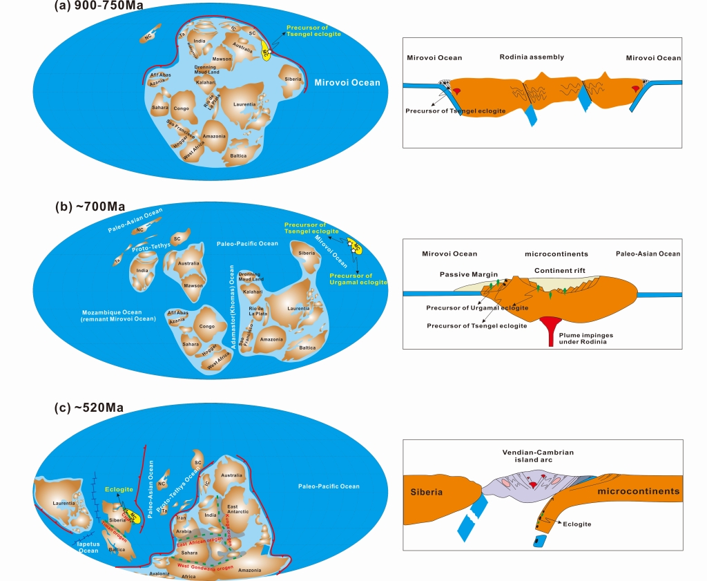 800彩票朱明帅副研究员、张福勤研究员、苗来成研究员、邹屹副研究员,联合英属哥伦比亚大学Matthijs A. Smit副教授和格拉纳达大学的Daniel Pastor-Galán等以蒙古新发现的两处榴辉岩为研究对象(图1),通过详细的野外地质、岩石学、地球化学和同位素年代学等综合研究,在中亚造山带中厘定出一条>1000 km的寒武纪高压变质带,为Mirovoi洋最终闭合提供了关键证据。
