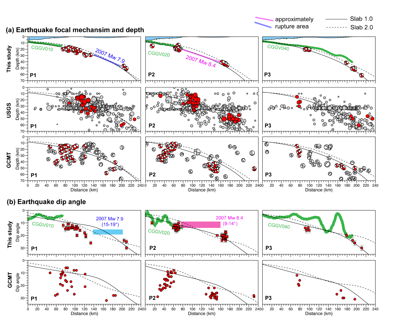近年来,随着地震观测台网密度的增加和分析手段的不断进步,地震的精定位和震源机制解已成为理解断层几何和摩擦状态的重要手段。尽管在少部分陆地区域密集台阵地震精定位方法已取得广泛的发展和应用,但在台站相对匮乏的地区(如海域)地震的震源参数精细研究仍面临挑战。在绝大部分俯冲带地区,由于缺乏近场地震观测资料,仅利用全球远场观测数据和常规方法只能获得极少量地震的震源机制解,且其水平位置和深度常有较大误差,制约着我们对大型逆冲断层几何和大地震破裂机制的认知。