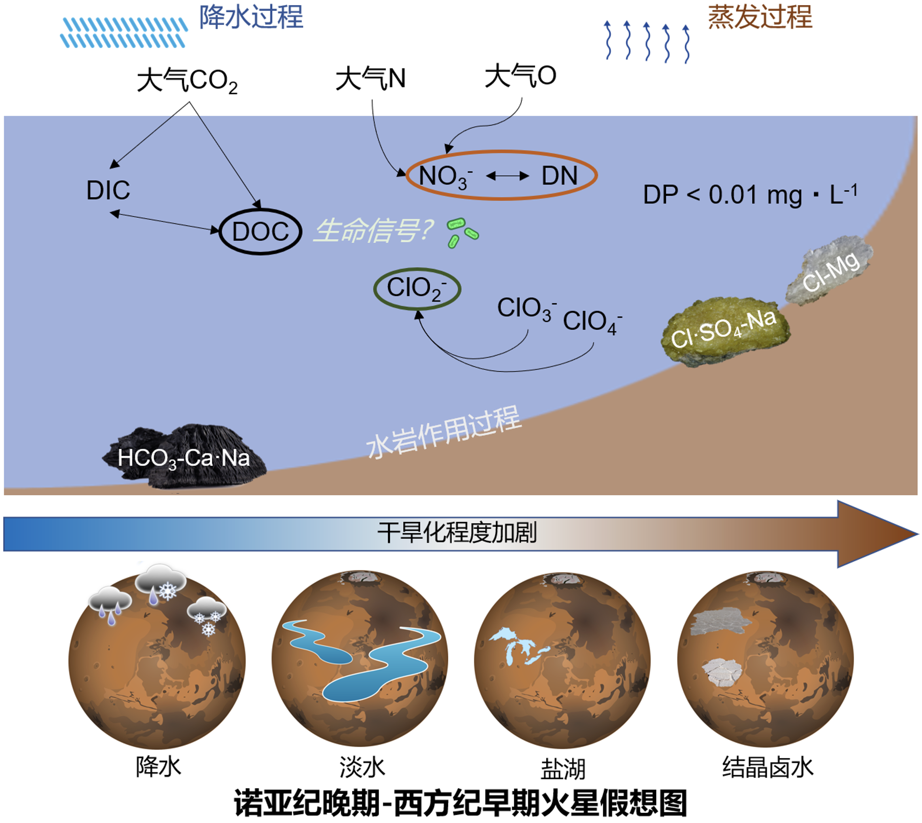 图2 柴达木盆地类早期火星水环境演化及潜在生命信号的概念图