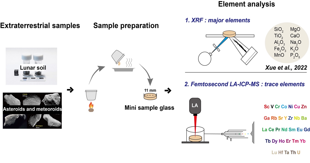 研究成果发表于国际分析化学期刊JAAS(刘艳红,薛丁帅,李文君,王忠强,梁燕,郭顺,万博. Trace element determination by femtosecond LA-ICP-MS in 10 mg extraterrestrial geological samples prepared as lithium borate glasses[J]. Journal of Analytical Atomic Spectrometry, 2024. DOI:10.1039/D4JA00275J.)。研究受先导B专项(XDB0710000)和国家自然科学基金(42073022)共同资助。
