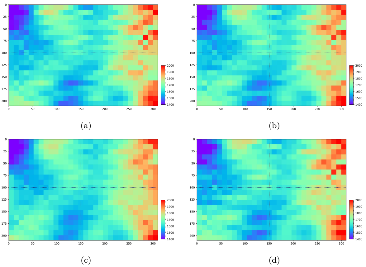 图3 二维线性层析成像结果。(a)截断奇异值分解法反演结果;(b)Tikhonov正则化方法反演结果;(c)共轭梯度法反演结果;(d)量子退火方法反演结果