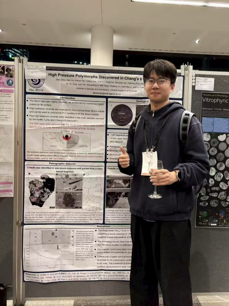 研究成果发表于国际学术期刊JGR: Planets(周湛,胡森*,何会存,高宇冰,李林曦,高亮,邱梦凡,周迪圣,刘焕欣,叶志虎,唐旭,谷立新,李晓光,杨蔚,林杨挺,李献华,吴福元. Discovery of coesite on the lunar farside[J]. Journal of Geophysical Research: Planets, 2025, 9: e2025JE009052. DOI: 10.1029/2025JE009052.)。该研究受国家自然科学基金(42241104)和中国科学院地质与地球物理所重点部署项目(IGGCAS-202204 & 202401)联合资助。研究样品由国家航天局提供。