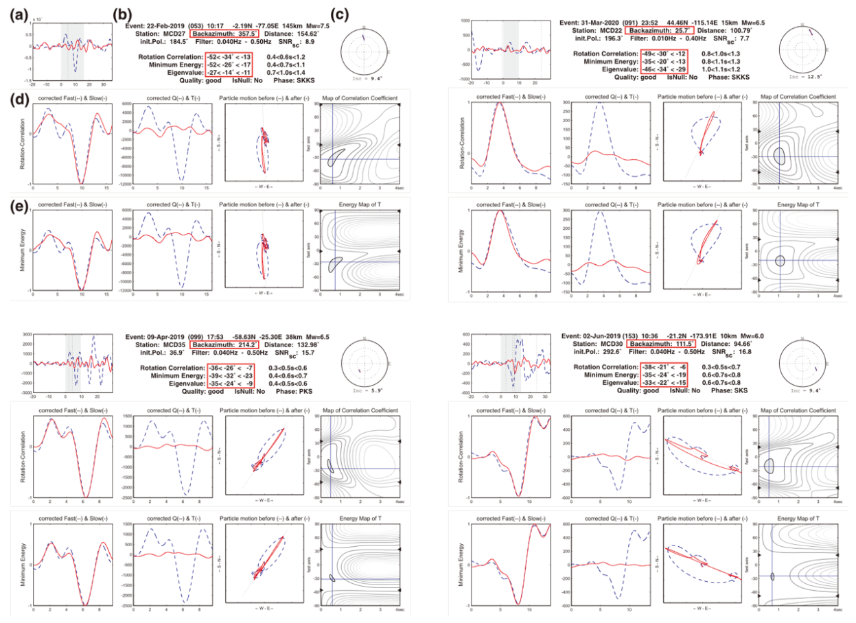 图2 XKS震相剪切波分裂分析的四个事件示例图