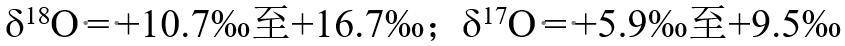 图3 研究样品的橄榄石三氧同位素组成。图中阴影区域为不同陨石样品的氧同位素组成。研究样品如红色点所示,相较于月球岩浆矿物显著富集重氧同位素,表现出和CI型或CY型球粒陨石类似的特点