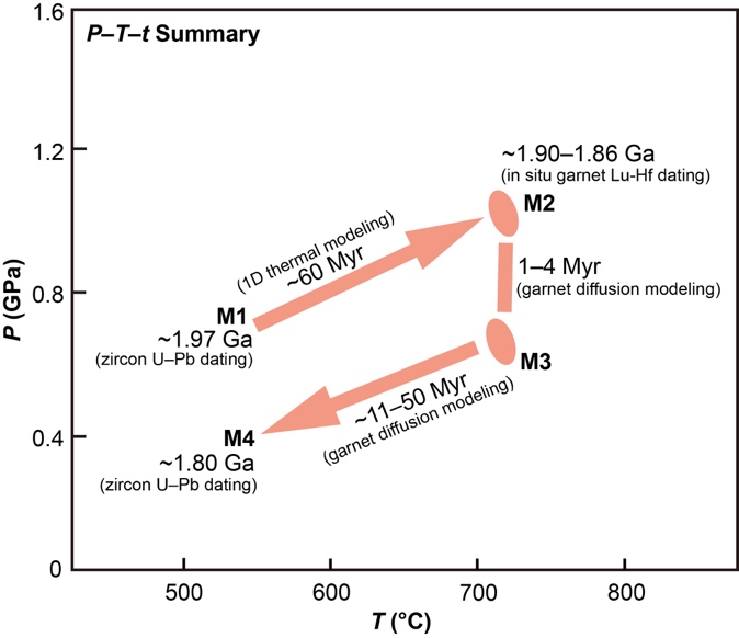 理解造山带中变质岩的冷却时间尺度和冷却速率,是揭示其构造背景和地球动力学机制的关键环节。研究表明,显生宙造山带的冷却速率相对较快,通常可达100 °C/Myr;前寒武纪造山带的冷却速率则相对较慢,往往小于50 °C/Myr。这种差异被认为反映了造山带内部热结构、岩石圈流变性及地幔热状态等对折返过程和冷却路径的控制。古元古代末期,全球出现近二十条线性造山带,标志着哥伦比亚超大陆的聚合以及板块构造全球化,因此解析该时期造山带的冷却时间尺度及速率,对于理解地球构造体制从太古代向现代板块构造的演化具有重要意义。
