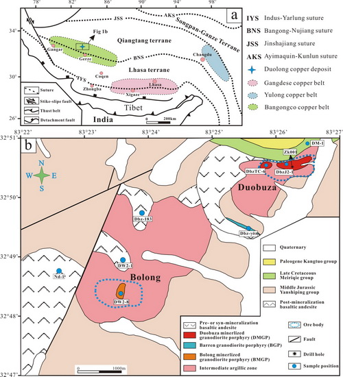 西藏班公湖带多龙富金斑岩铜矿床(图1)是新发现的具有超大型规模的矿床(铜 400-500万吨,0.94% Cu;金 80-100吨,0.21g/t Au),由于此矿床的发现,使该成矿带成为继玉龙、冈底斯之后的西藏第三条斑岩铜矿带。该矿床研究程度低,其成岩成矿时代及岩浆热液演化时限...