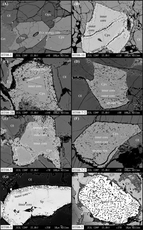 单斜辉石是地幔中的主要组成矿物,是认识地幔部分熔融和交代过程的重要研究对象。地幔橄榄岩中单斜辉石发育的海绵边结构(或称“筛状结构”)记录了其所经历的地幔深部过程。但是,人们对这种结构的成因一直存在争议:是橄榄岩-熔体反应还是减压/加“水”熔融?