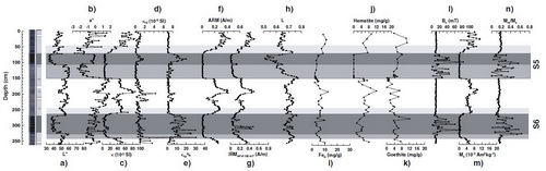 图1: S1磁学地球化学等参数随深度变化