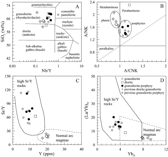 大型斑岩铜矿常与俯冲背景下的高氧化性(氧逸度通常≥NNO+1)岩浆活动有关,且成矿岩石地球化学组成常表现出埃达克质特征(高Sr、低Y及高Sr/Y),明显区别于非成矿岩石-正常弧岩浆(低Sr...      查看详细>>>>