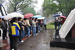 4月19日,同学们冒雨考察了保存于河北理工大学校园内的地震遗址,并参观了开滦国家矿山公园博物馆。“先有开滦后有唐山”,有着128年历史的开滦煤矿曾是唐山的重要经济支柱,然而大地震让开滦和这座城市一同覆灭,虽然很快就恢复了生产。但改革开放后,开滦开始陷入亏损。开滦人并没有屈服,他们由此困境始,推向了市场,从计划经济转向了市场经济。1994年,开滦提前两年实现了扭亏为盈,结束了长达8年的亏损历史,开滦煤矿与唐山一起获得了新生。在参观中,同学们兴趣盎然,他们认真听取讲解,仔细观看展品,大量的文字、图片和实物使同学们深刻感到改革开放的巨大动力。