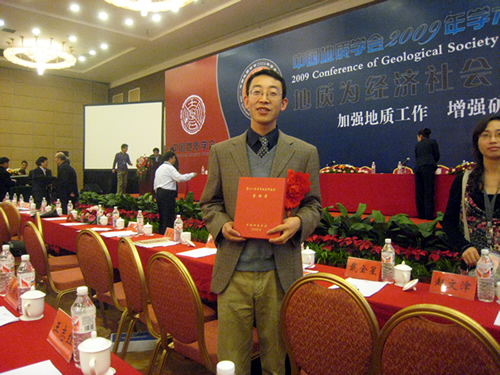 10月23日上午,在中国地质学会2009年学术年会开幕式上,举行了第十一届青年地质科技奖颁奖仪式。国土资源部部长、党组书记、国家土地总督察、中国地质学会理事长徐绍史,原地矿部副部长、国际地科联前主席张宏仁,国土资源部党组成员、办公厅主任冀文林,中国地质学会常务副理事长孟宪来等为获奖者代表颁奖。于翔等10人与万玲等40人分获“金锤奖”、“银锤奖”荣誉称号。