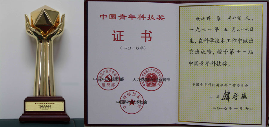 中共中央组织部、人力资源和社会保障部、中国科学技术协会联合印发《关于表彰第十一届中国青年科技奖获得者的决定》(组通字〔2010〕4号),我所杨进辉研究员荣获第十一届中国青年科技奖。