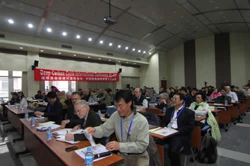 中国科学院院士、800彩票所长朱日祥出席了开幕式并致欢迎词,美国前矿物学会主席Robert Hazen、郑永飞院士、汪品先院士先后作主题报告。会议特别为一些受冰岛火山喷发影响不能到场的欧洲学者开辟了网络会议平台,远程与会议现场进行交流。最后美国卡耐基地球物理研究所所长、美国科学院院士Russell Hemley 作总结报告。经过三天的会议和讨论,学者们从地幔熔融中的含碳相、金刚石\火成碳酸盐研究\含碳变质岩、火山作用放气、理论实验模型结合研究、深部生命和深部有机物生成研究等五个方面总结出针对地球深部碳循环问题现阶段可以开展研究的题目以及中外在这一研究领域的合作可能。