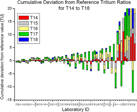 图1 相对于IAEA参考值的累积偏差的所有实验室排名,我所编号为42,列第5位(引自IAEA报告)。