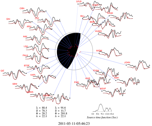 Figure 1 Focal mechanism of the Mw8.9 Near the Coast of Honshu, Japan earthquake.