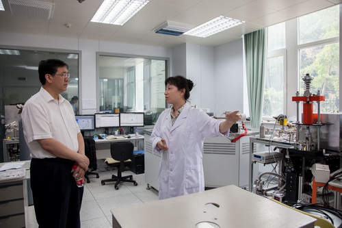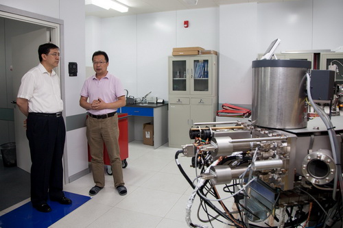 阴和俊副院长一行首先参观了我所MEMS数字检波器实验室、海底地震仪研发实验室、离子探针实验室、纳米离子探针实验室和稀有气体实验室等大型公共实验室。