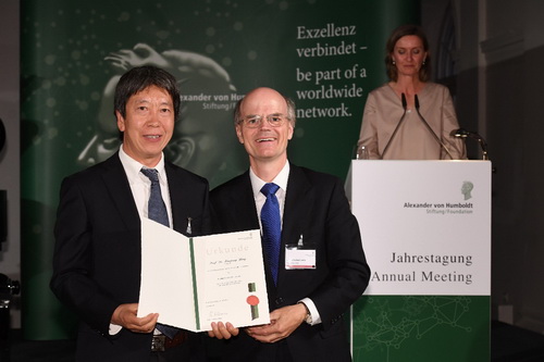 洪堡研究奖由德国亚历山大?洪堡基金会于1972年设立,面向德国以外的全球杰出科学家,以表彰他们在各自领域的科学研究和学科引领等方面取得的卓越成就。该奖项由德国和国际本领域著名学者联名推荐,候选人必须是在其研究领域做出过原创性理论、重大发现或发明,对该领域的发展产生重要影响的科学家。