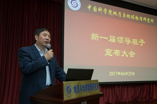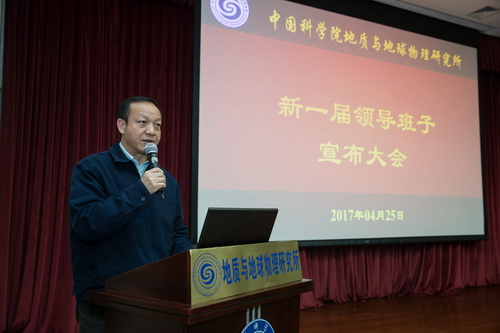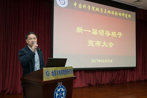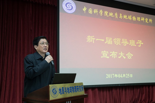 李和风代表院党组宣读了地质与地球物理研究所新一届领导班子的成员组成,吴福元任地质与地球物理研究所所长欧龙新底青云杨进辉魏勇任地质与地球物理研究所副所长。