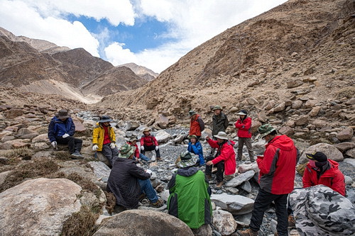 610-16日,中国科学院地球科学研究院院长吴福元院士(800彩票所长)、副院长徐义刚院士(广州地化所所长)带队对喀喇昆仑白龙山伟晶岩型锂矿开展了为期一周的野外现场考察。我院秦克章研究员、袁超研究员、钟宏研究员、王核研究员、何斌研究员,南京大学王汝成教授、倪培教授等19位研究人员参加了此次考察。