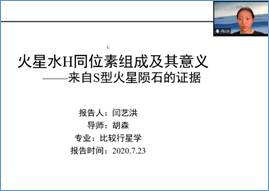 23日晚,我所研究生会举办“新星论坛(第4期)——火星探测专题论坛”。论坛为视频会议形式,伴随同步网络直播,共有500余人参加或观看。相关专业研究生作“中国火星车巡游地区局地壳磁场模型”、“火星水H同位素组成及其意义-来自S型火星陨石的证据”等学术报告,参会人员就行星地球化学、行星空间物理等方面的问题进行了热烈而深入的讨论。