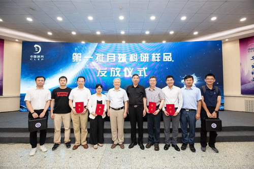 2021年7月12日,国家航天局、中国科学院联合举行第一批月球科研样品发放仪式,向13家科研机构发放了31份样品。我所潘永信院士、李献华院士、林杨挺研究员、李金华研究员作为申请人共获得10份样品,包含4份粉末样品、3份岩屑样品、3份光片样品,共计5520.3mg。