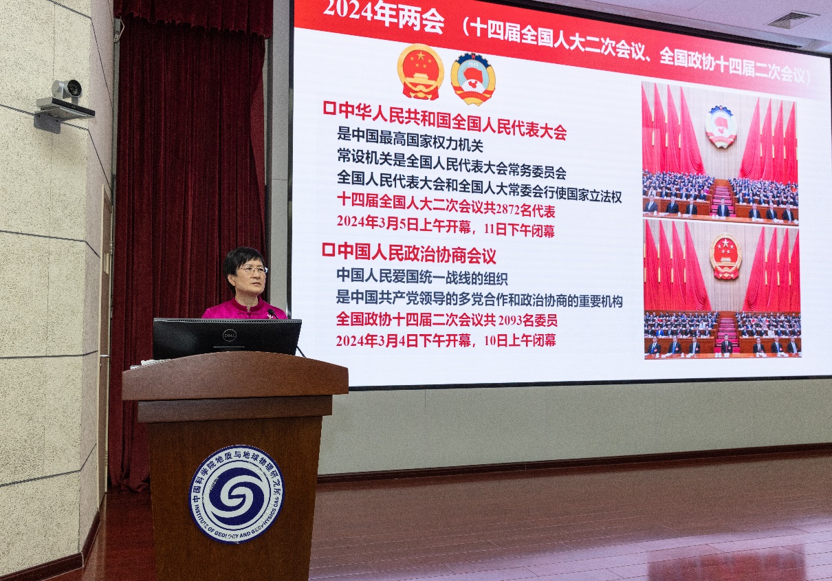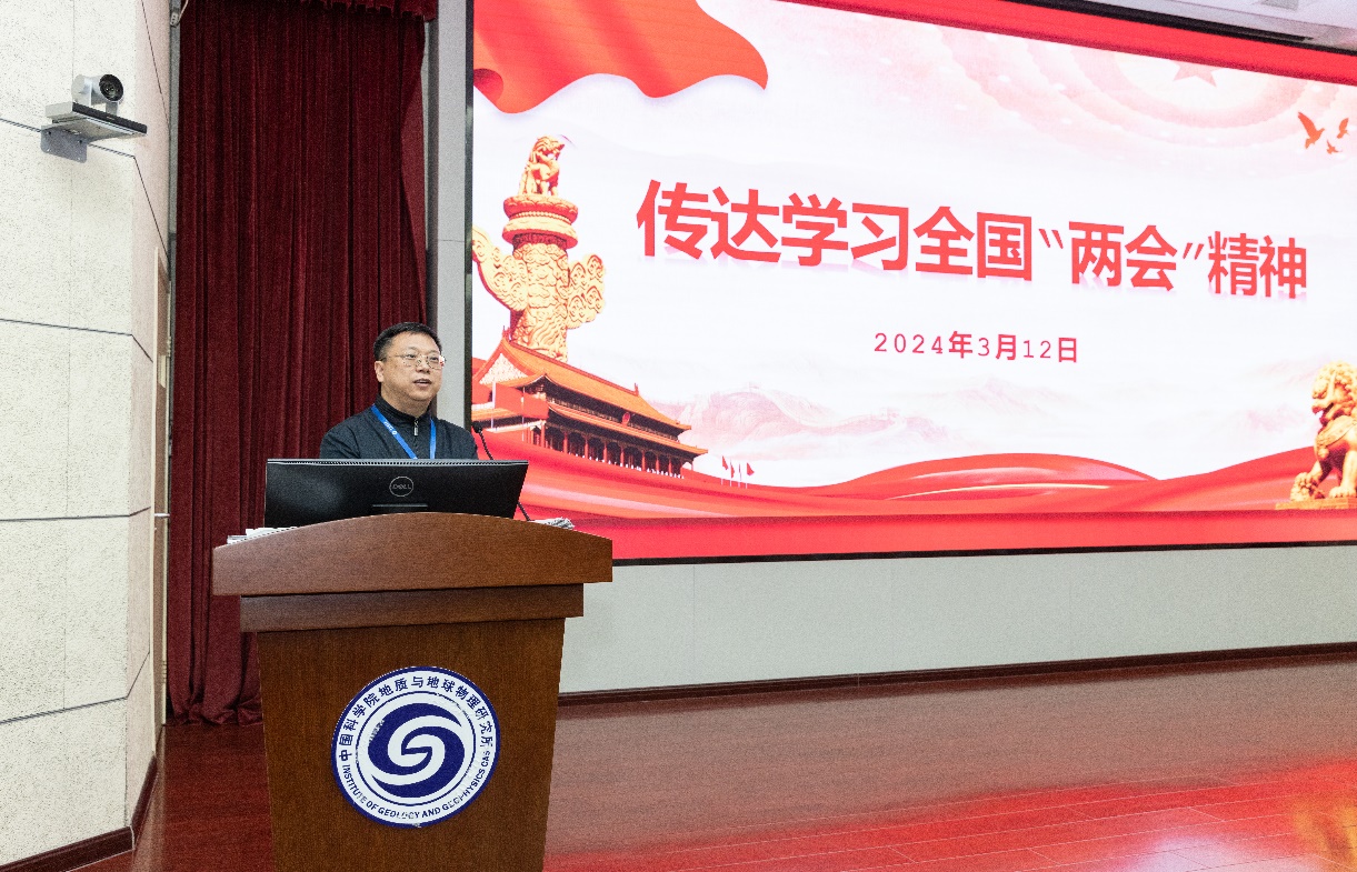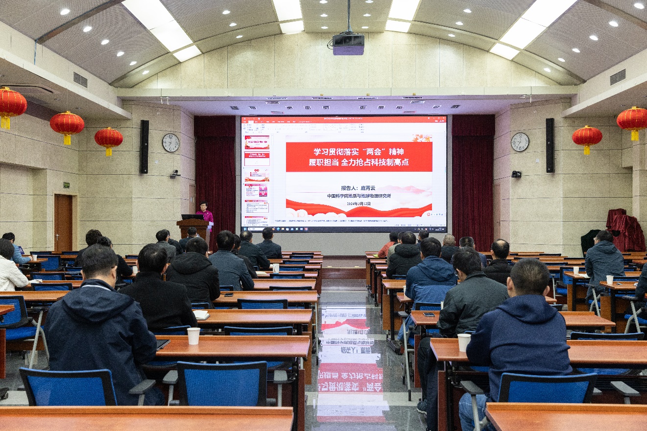 全国人大代表、研究所所长底青云院士作了《学习贯彻落实两会精神 履职担当 全力抢占科技制高点》的报告,介绍了今年全国两会情况、分享了2024年政府工作报告、全国人大常委会工作报告等主要内容和自己参会感悟、并结合实际进一步明确了研究所2024年核心工作。底青云指出,今年的全国两会围绕推进中国式现代化这一新时代最大的政治,聚焦坚持高质量发展这个新时代的硬道理,共商发展大事谋划发展大计,是一次高举旗帜、坚定信心、凝心聚力、团结奋进的大会,是锚定强国建设、推进民族复兴的大会。特别是两会期间,习近平总书记参加江苏代表团审议时强调:要牢牢把握高质量发展这个首要任务,因地制宜发展新质生产力。底青云强调,作为国家战略科技力量主力军,作为地学和行星科学国家级研究机构,我们要全面贯彻落实习近平总书记重要讲话精神和全国两会精神,全面贯彻总书记对中国科学院提出的“四个率先”和“两加快一努力”目标要求,时刻牢记“国家队”职责,继续深化改革、攻坚克难、勇攀高峰,奋力实现高水平科技自立自强,以高质量科技创新支撑引领高质量发展。
