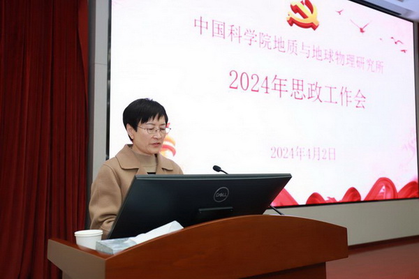 底青云在致辞中强调面对新时代、新任务、新要求,研究所必须坚持以习近平新时代中国特色社会主义思想为指导。研究所思政工作要始终坚持“政治性”,紧盯立德树人根本任务;要始终坚持“教育性”,落实“三全育人”教育理念;要始终坚持“时代性”,突出科技创新人才培养。她要求进一步强化“大思政”工作体系建设,用心用情、久久为功地培养德智体美劳全面发展的社会主义建设者和接班人,在抢占科技制高点的新征程中为国家高质量发展贡献地学力量。