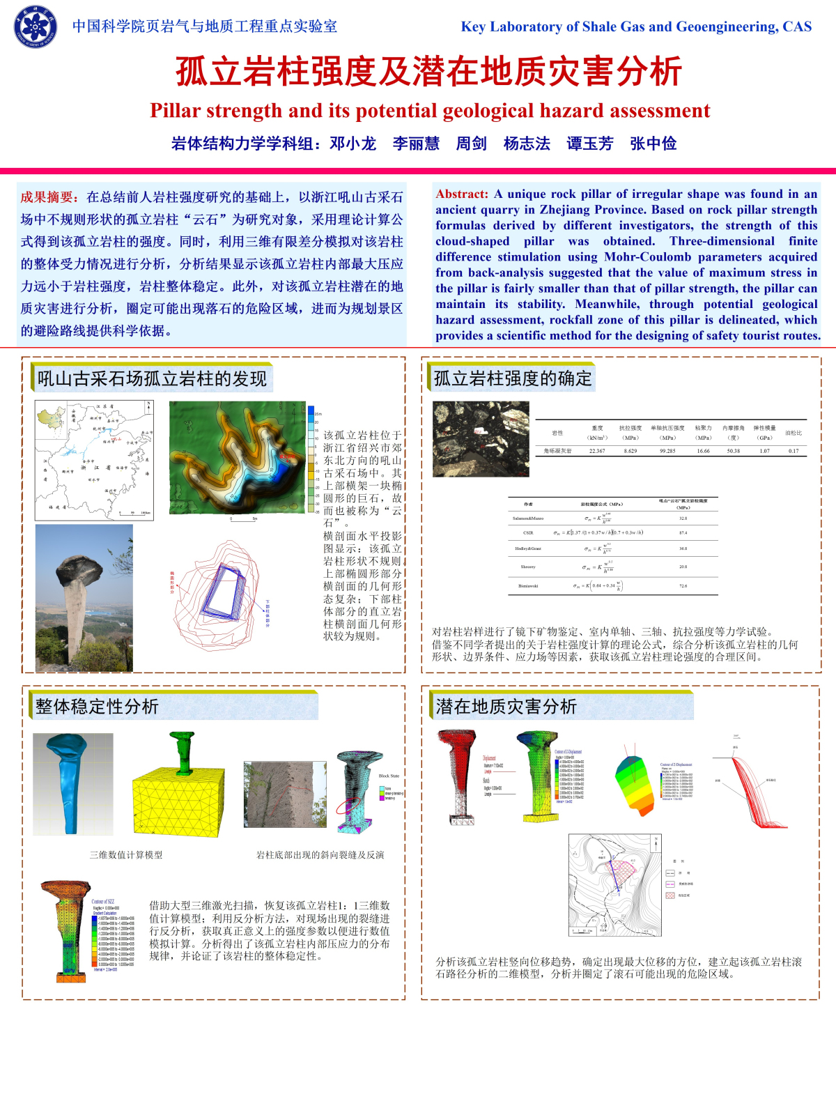 邓小龙 浙江吼山孤立岩柱“云石”强度及潜在地质灾害分析