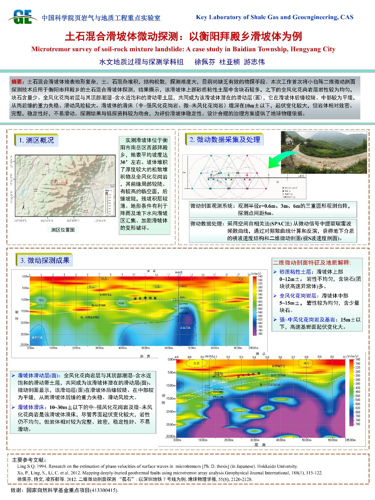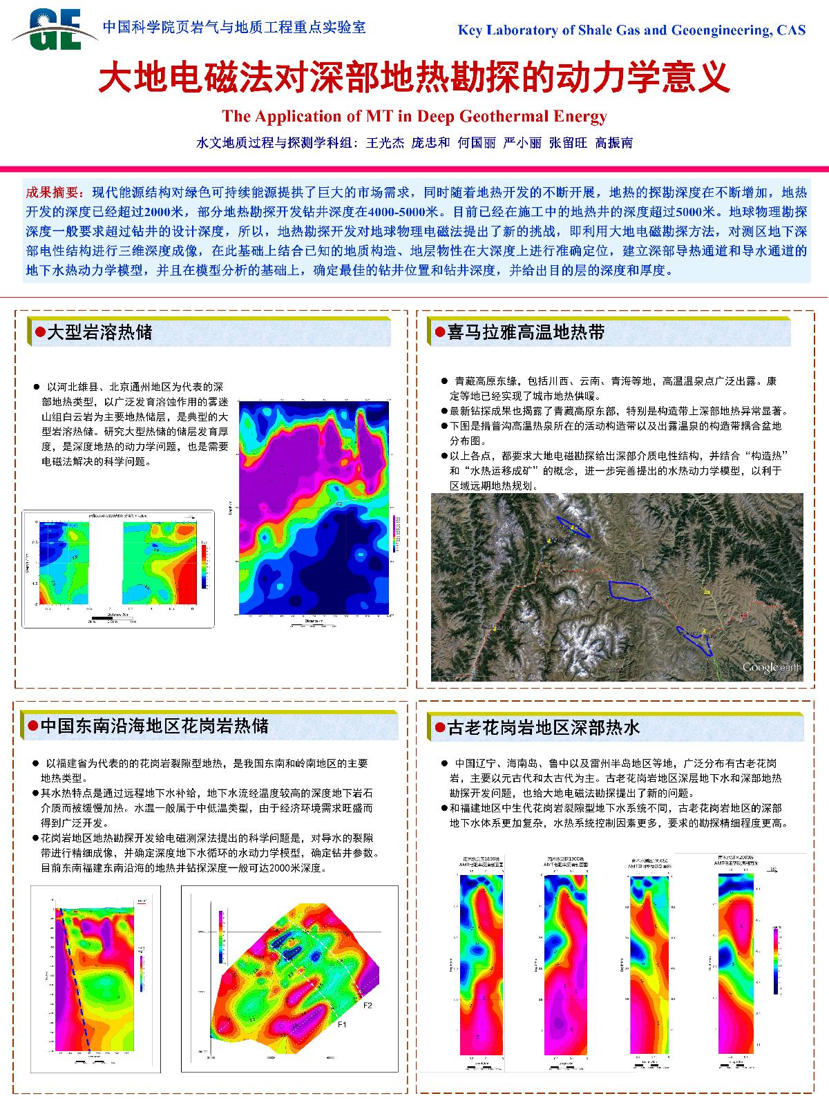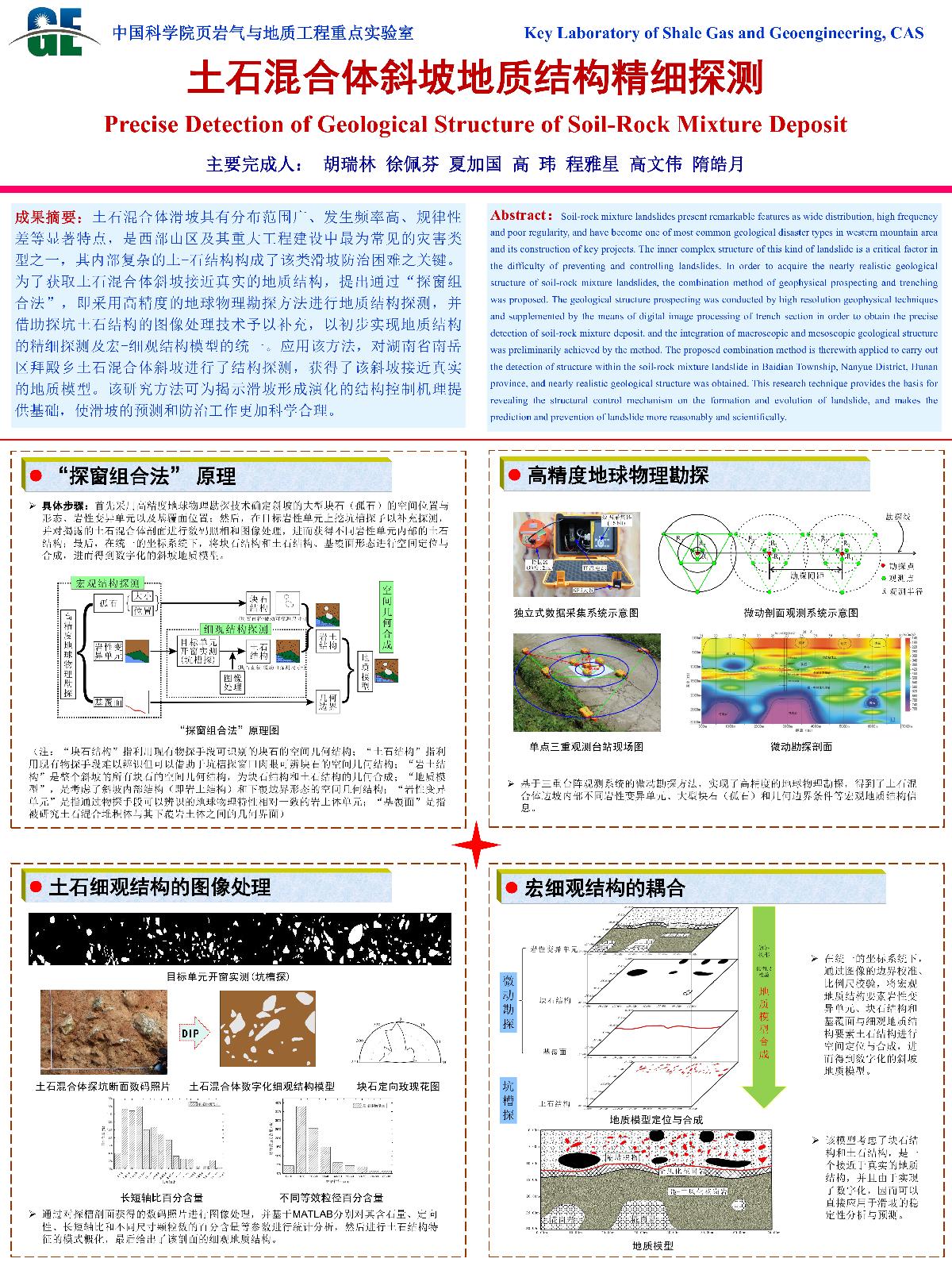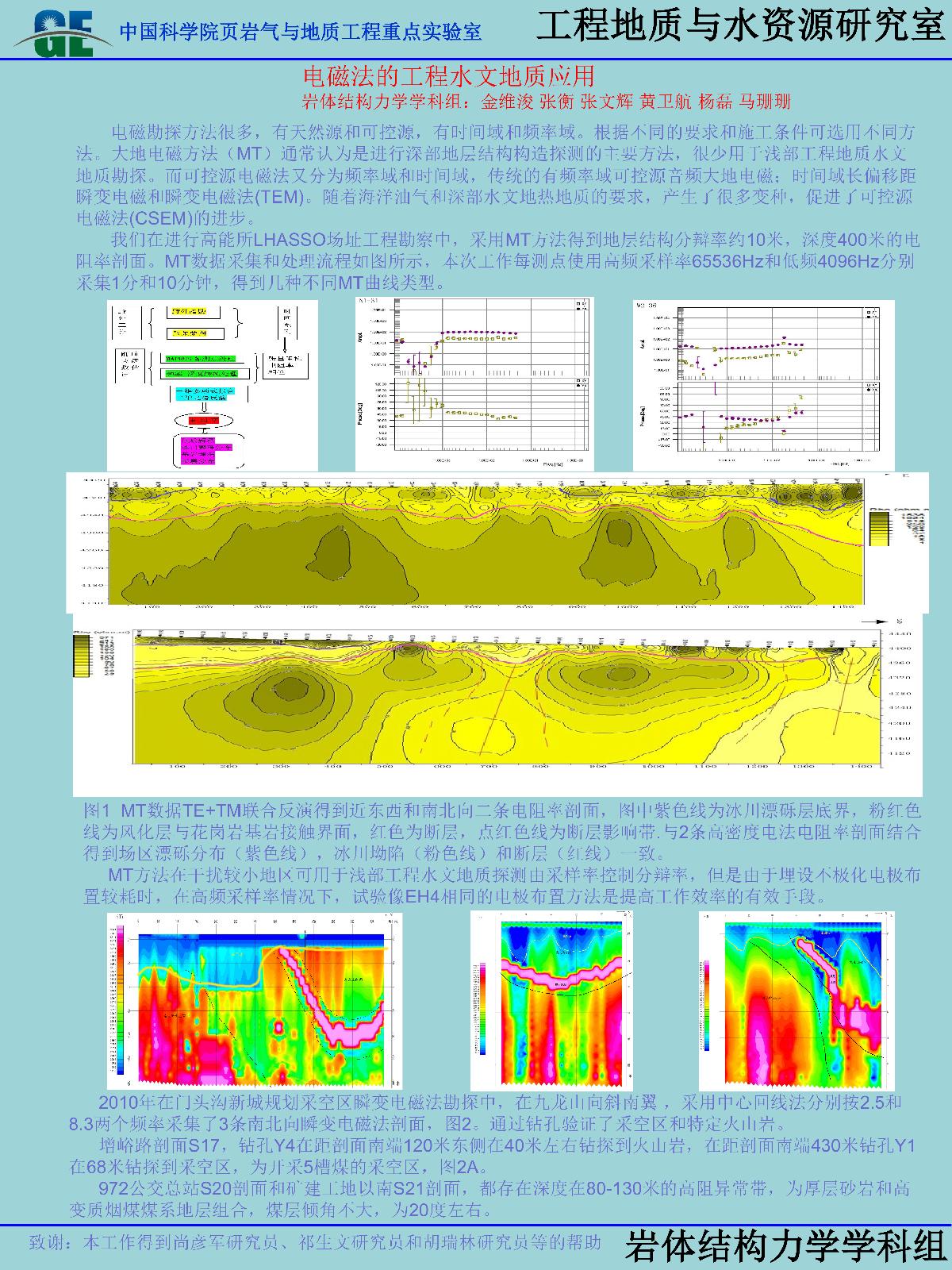 | 金维浚_大地电磁法的工程物探应用 | 黄晓林_FDEM modeling on the seismic response of the filled joint under stress waves | 黄天明_页岩气水力压裂过程中的地球化学反应 | 胡瑞林_土石混合体斜坡真实地质结构探测 |