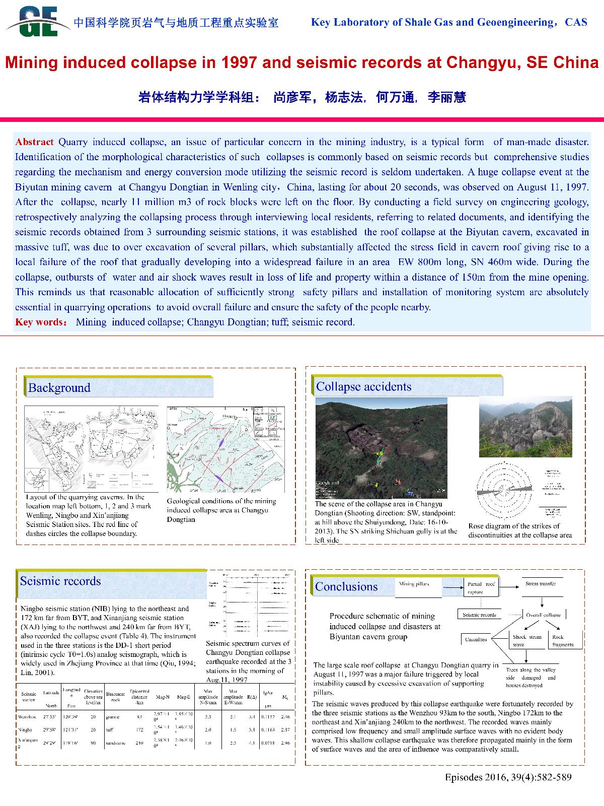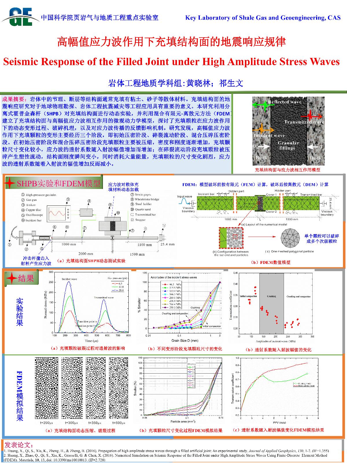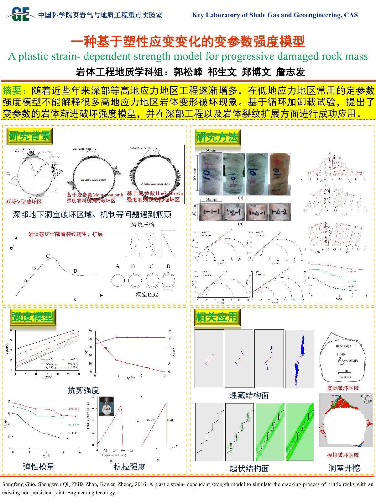 | 赫建明_页岩水力压裂试验与模拟 | 贺建先_冷竹关岩质斜坡实测地震动响应研究 | 何国丽_华阳川铀铌铅多金属矿电性结构及其成因研究 | 郭松峰_一种基于塑性应变变化的变参数强度模型 |